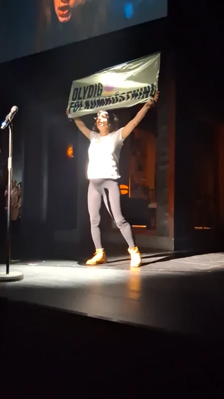 Under föreställningen “Rage” på Dramaten i Stockholm tog sig Roxy Farhat, konstnär och aktiv i Återställ Våtmarker, upp på scenen med en banderoll och ropade ut ett budskap till publiken. Aktionen skedde i samband med Återställ Våtmarkers nya projekt Olydig Folkomröstning.